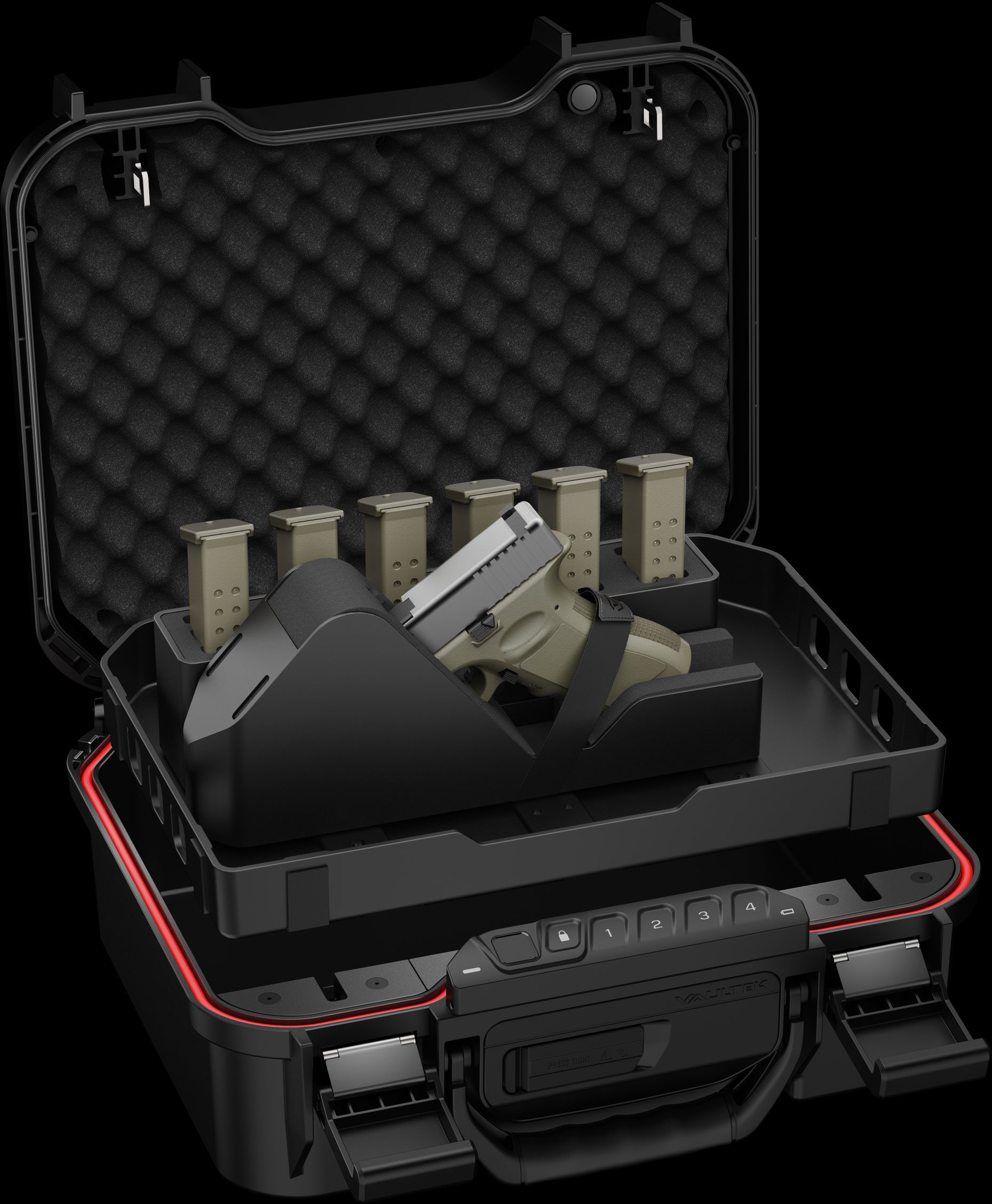 Versatile foam interior design. Utilize the pluck foam to secure sub-compacts, magazines, or everyday carry items, or remove it entirely to accommodate full-size pistols and larger gear.