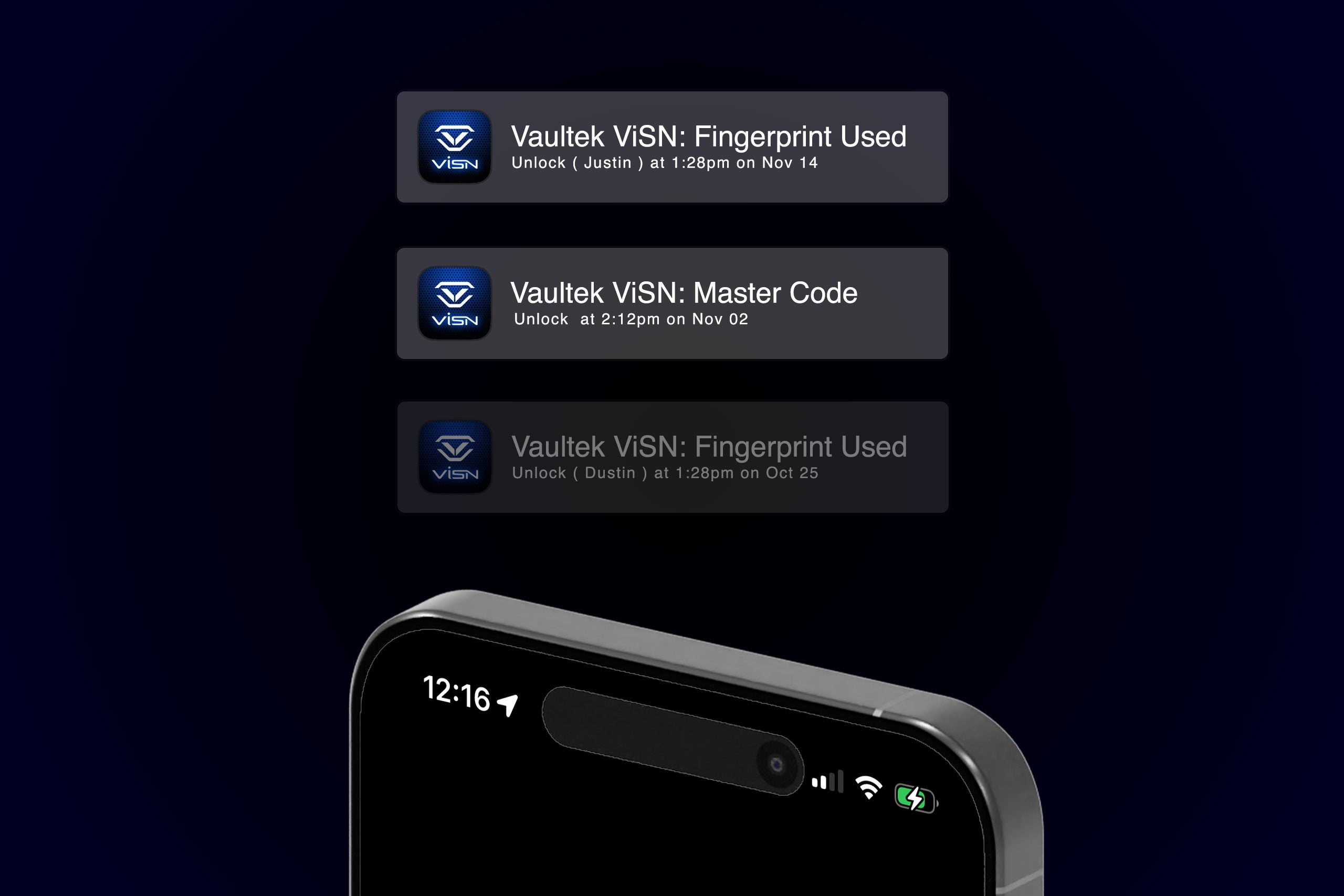 ViSN stands for Vaultek Intelligent Safe Network, and uses WiFi enabled cloud technology to manage the safe via an iOS/Android smartphone app and a web based dashboard.