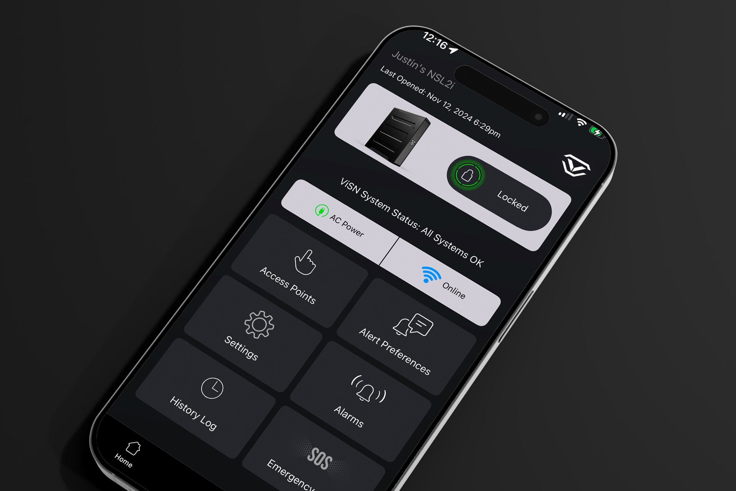 The SOS Emergency feature allows you to send an SOS alert, via text or email, in an emergency situation by simply accessing the safe – thus saving precious time without having to use a phone.