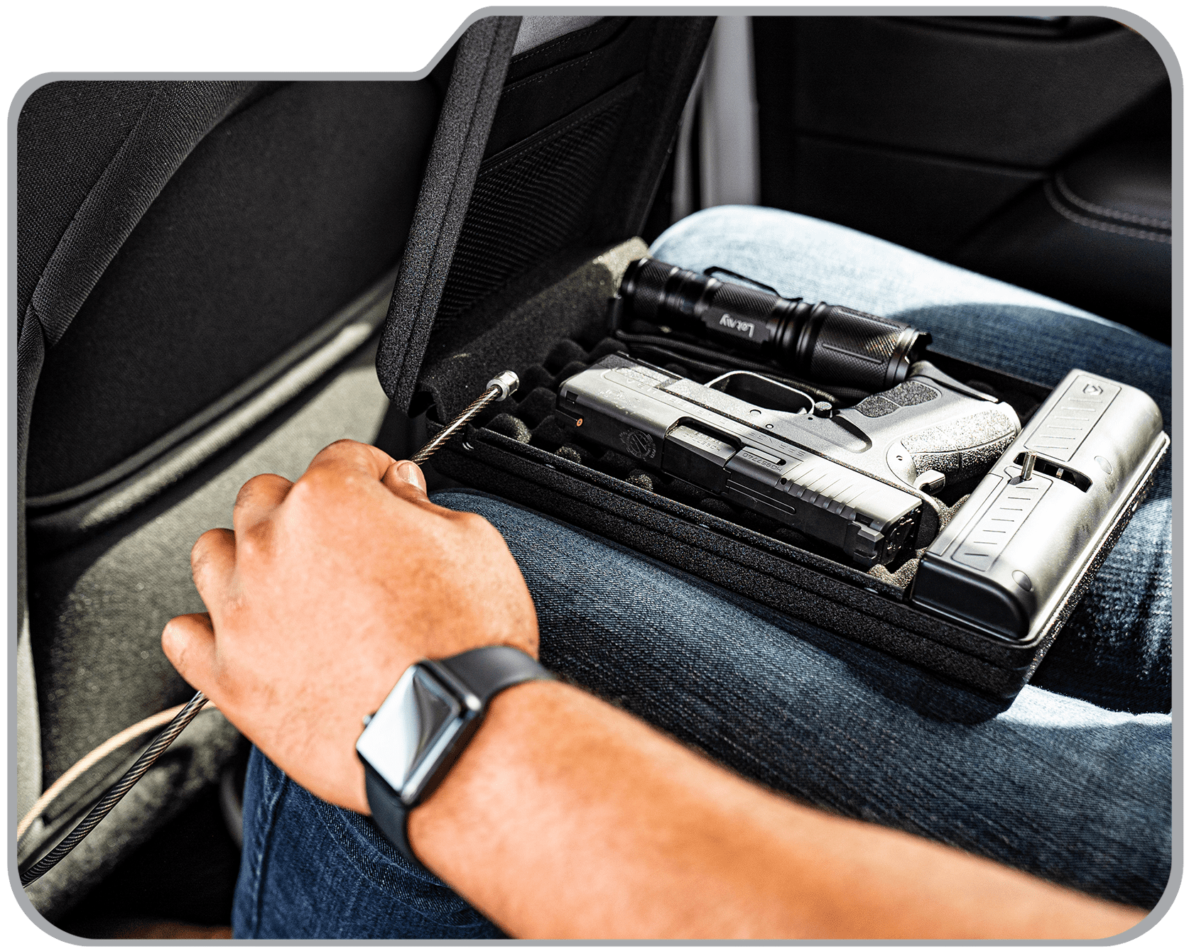 Compact Design fits a full size handgun up to 10.75” in overall length plus a built-in lid organizer to store passports, credit cards, and other small documents.