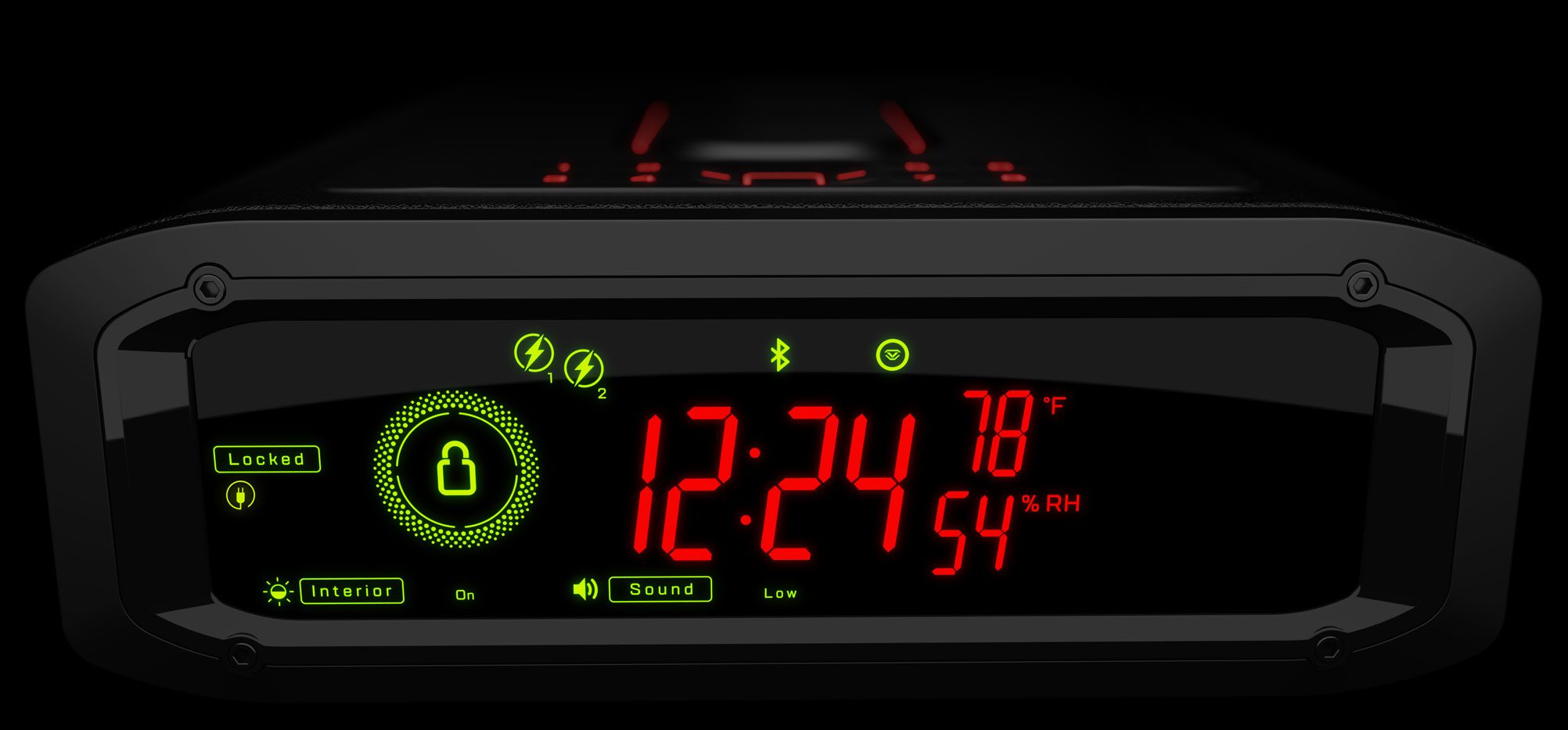 Customizable LED touch display can show time, temperature, and humidity to make the ultimate modern home safe.