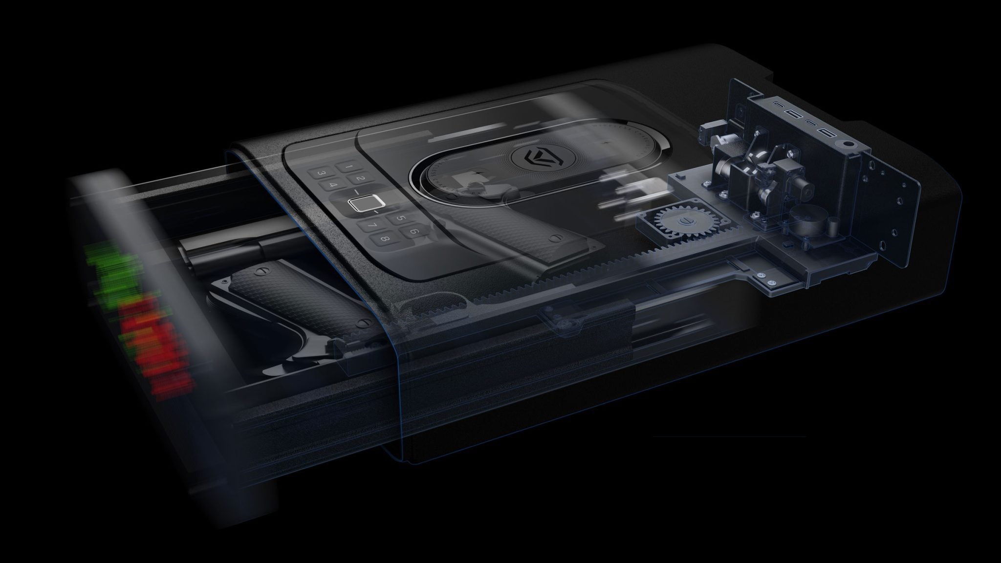 Store more with a larger interior setup.Smart Station DS5i interior is now 25% larger. Enough to easily secure multiple pistols, mags, car keys, cards, and more. Designed from the ground up to work with your daily routine.