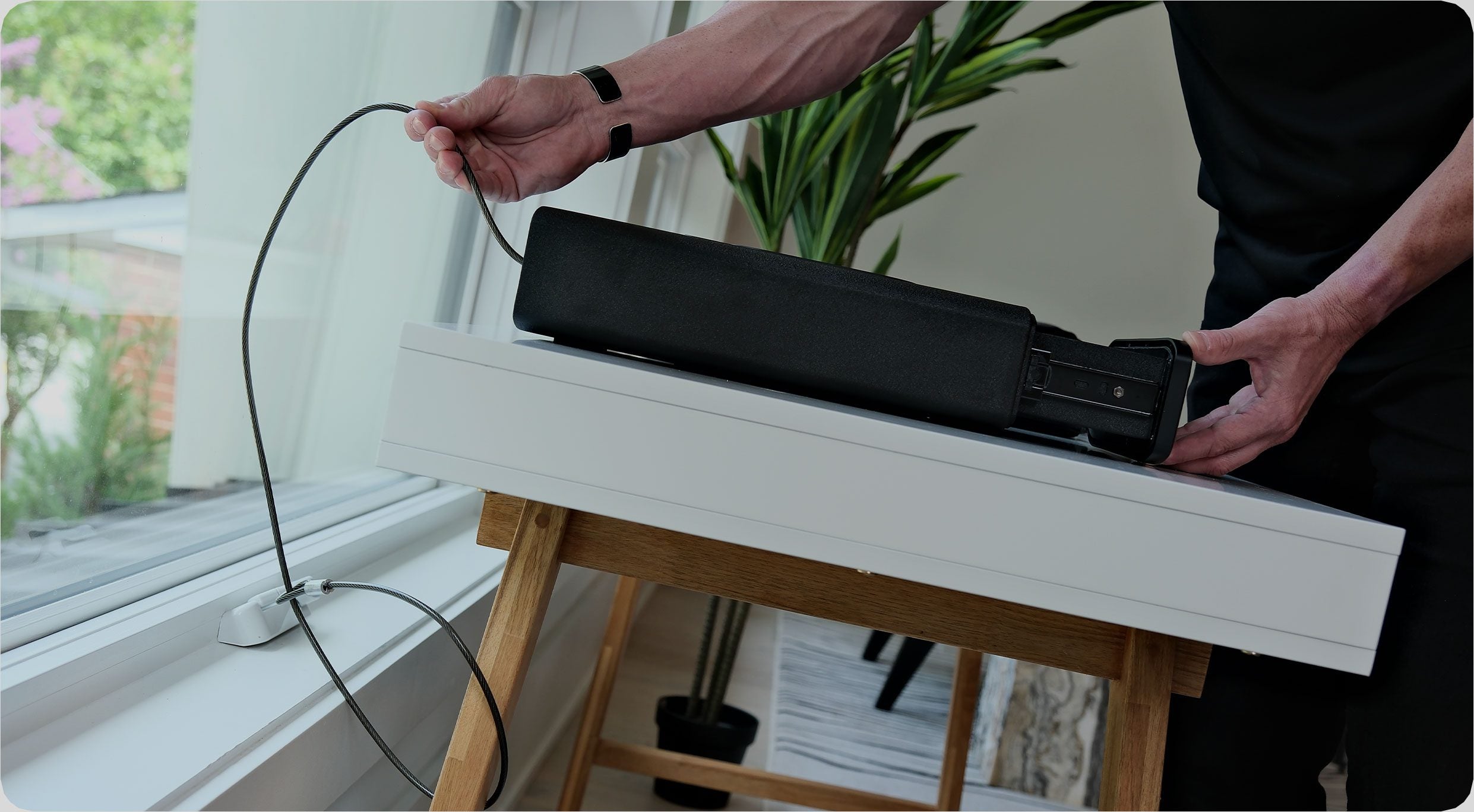 Quickly attach the steel cable to secure in place.