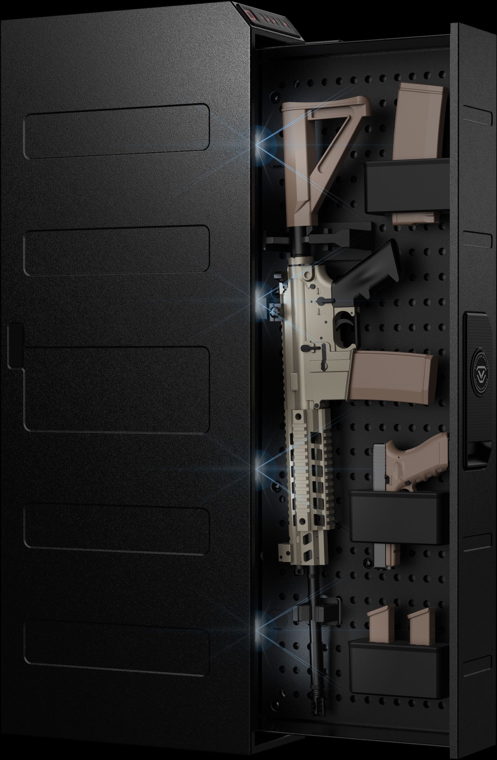 A master of storage, designed for use in vertical + horizontal positions. Store multiple rifles, pistols, EDC gear items, and more. ViSN WiFi is built inside and makes your safe easy to set up and monitor.